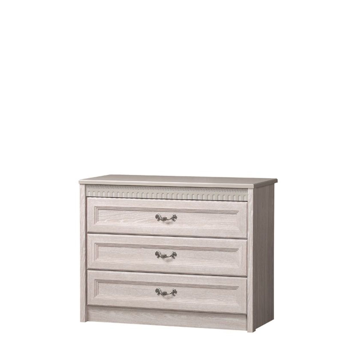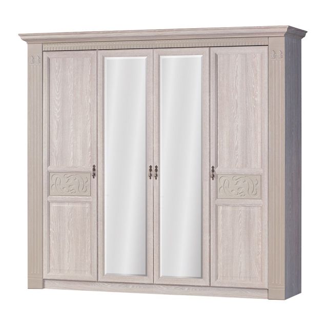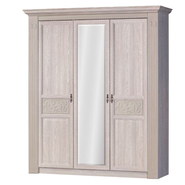 Мебель оснащена надежной немецкой фурнитурой «Hettich, во всех модулях серии «Лючия» устанавлена одинаковая лицевая фурнитура под состаренное золото, поэтому шкафы для одежды и тумбы могут быть использованы для обоих помещений